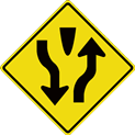 Divided Highway Ahead The highway ahead is divided into two one-way roadways. Keep to the right. |