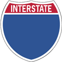 Blue and white signs direct you to services, such as gas, food, motels and hospitals.