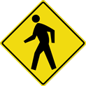 Pedestrian Crossing Watch for people crossing the street. Slow down or stop if necessary. |